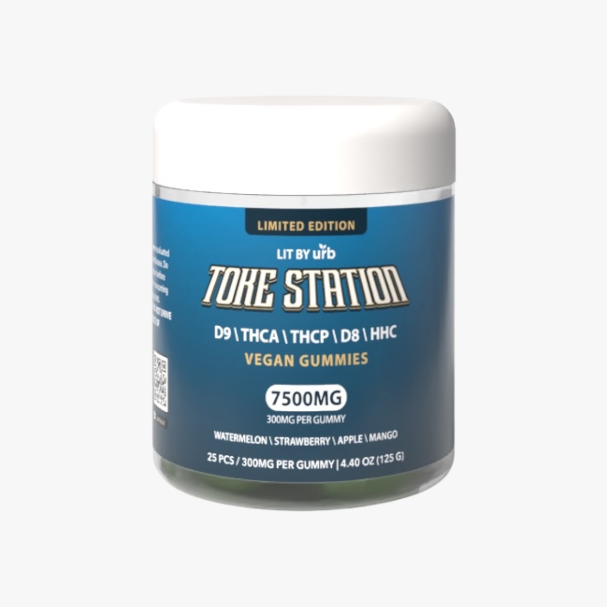 URB X TOKE STATION LIMITED EDITION VEGAN GUMMIES | D9+THCA+THCP+D8+HHC | 7500MG | 25 COUNT JAR | ASSORTED FLAVOR